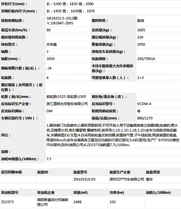 湖北五環(huán)華通牌HCQ5033XQYE5爆破器材運(yùn)輸車