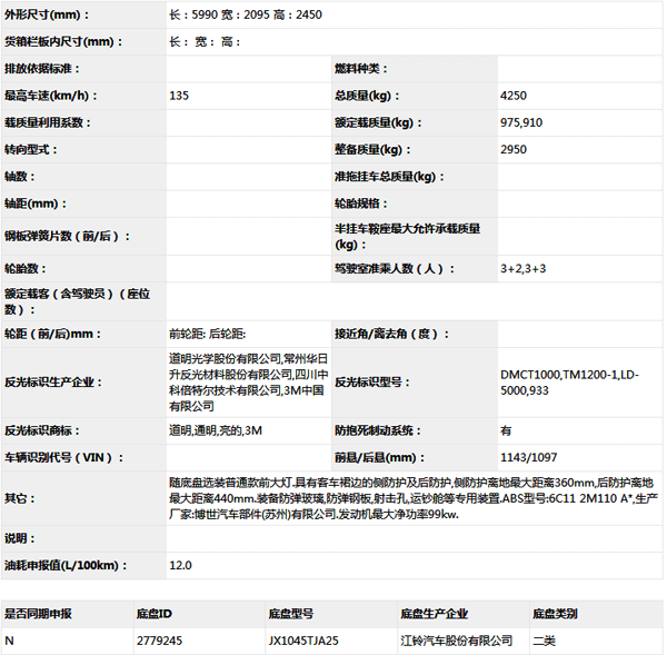 公告型號 JX5049XYCMK25