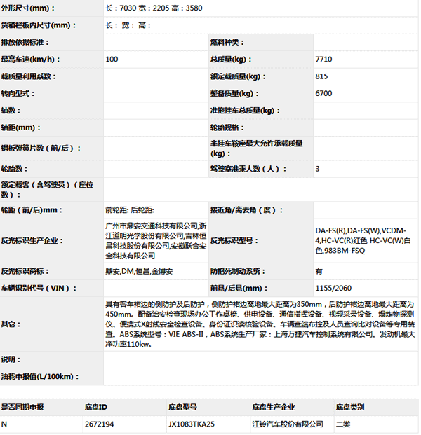 公告型號(hào) JX5080XZJMLA25