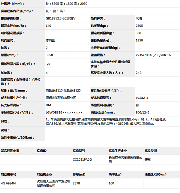 公告型號(hào) GLT5030XJQ