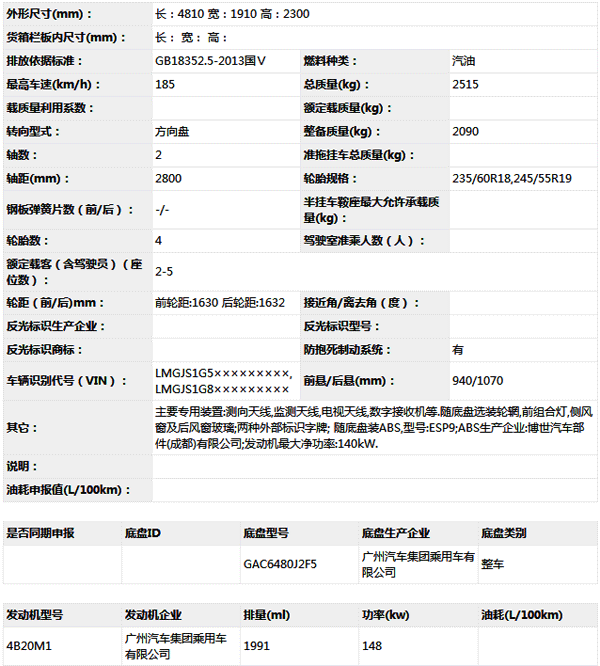公告型號 SLT5030XJEGC1W