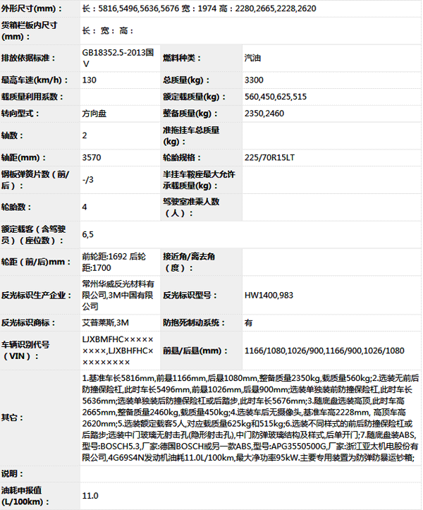 公告型號(hào) SLT5032XYCE1CW