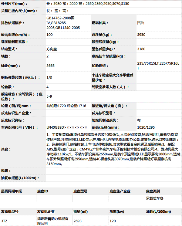 公告型號(hào) CA5040TXUFG21