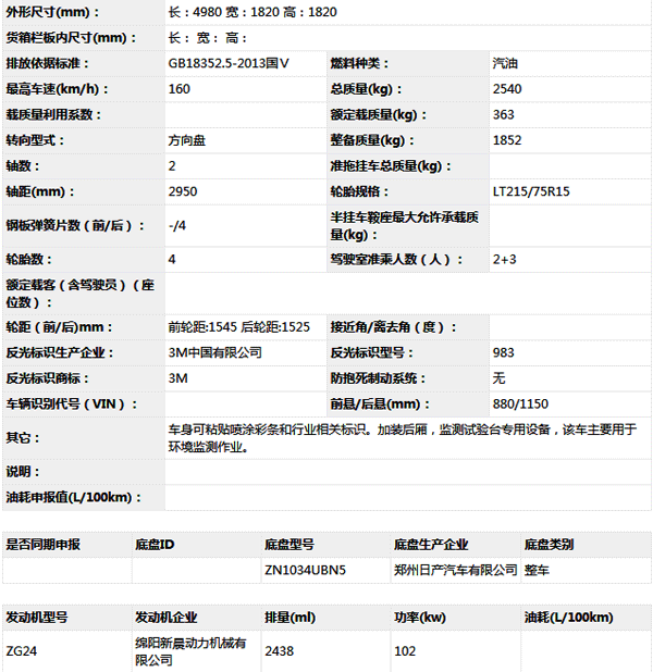 公告型號 ZSQ5030XJE
