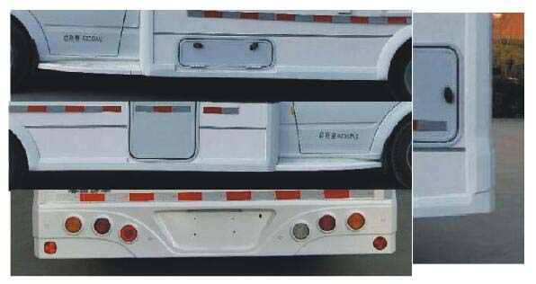 備注 車廂內(nèi)配備有桌子以及可由座椅轉(zhuǎn)換而來的睡具,炊事設(shè)施,淋浴設(shè)施,衛(wèi)生間,儲藏設(shè)施等,車廂門窗使用亞克力玻璃材質(zhì);后部可選裝無拓展廂,后部可選裝無窗戶,選裝無遮陽棚寬為2270mm,選裝無頂置空調(diào)高度為2860mm;兩側(cè)及后下部為裙邊結(jié)構(gòu),滿足防護(hù)要求,側(cè)后下部防護(hù)與廂體為一個整體,側(cè)防護(hù)離地高度295mm,后防護(hù)離地高度395mm;ABS型號:6C11 2M110A*,生產(chǎn)廠家:博世汽車部件(蘇州)有限公司.發(fā)動機最大凈功率99kw;選裝多種形式的艙門和窗戶;乘客門樣式及位置的選裝;