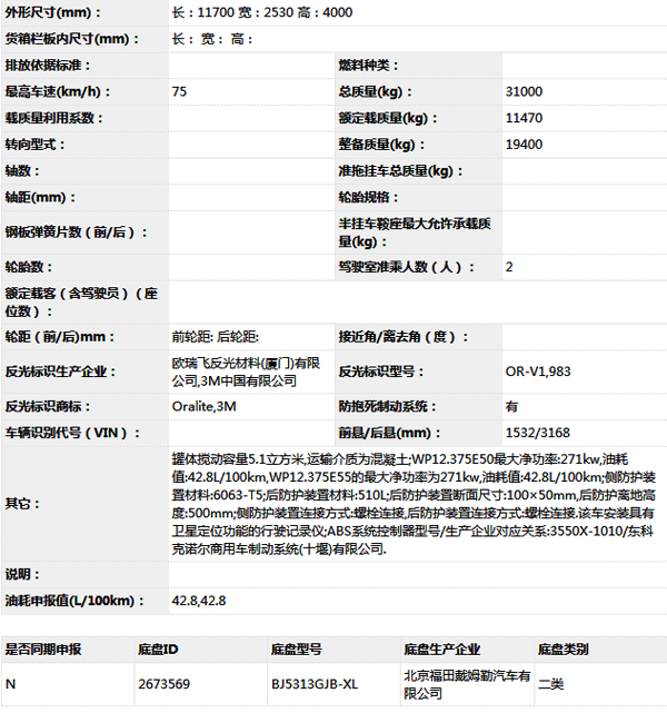 北汽福田BJ5313GJB-LC混凝土攪拌運(yùn)輸車