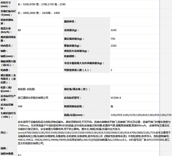 公告型號 CLW5035XZWE5