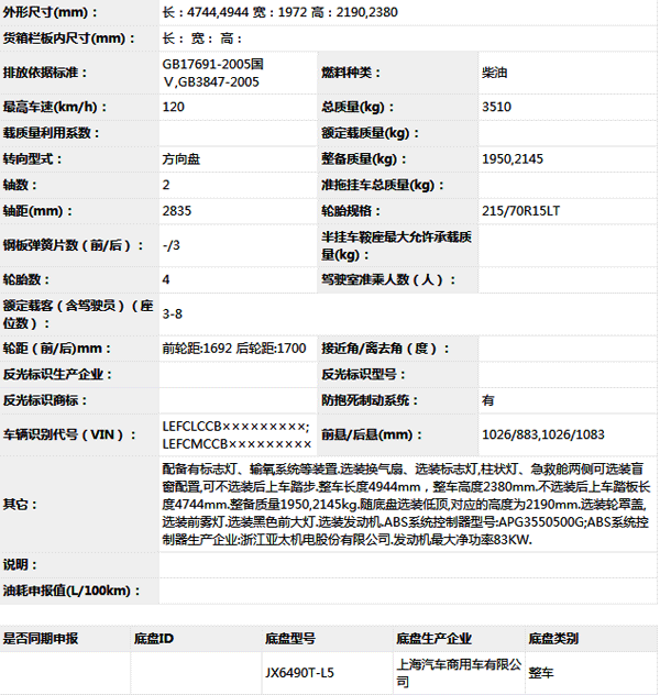 公告型號 NJ5040XJH54