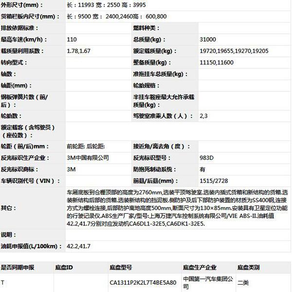 公告型號(hào) CA5311CCYP2K2L7T4E5A80