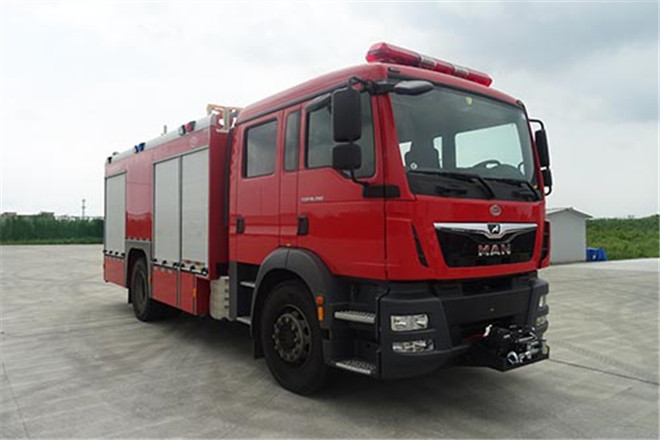 | 備注 | 罐體總容積為5.971立方米,水罐容積:4.500立方米,水罐尺寸:1580×2200×1350mm,泡沫液罐容積:1.471立方米,泡沫液罐尺寸:840×1350×1350mm。整體式側防護結構,后防護裝置材料:Q235A,截面尺寸:80×140mm,與車輛連接方式:螺栓連接,后防護離地高度:415mm,前伸:395mm, ABS生產企業(yè)為WABCO,型號為480020XXX0。主要專用裝置有消防泵、消防炮、絞盤。 | ||