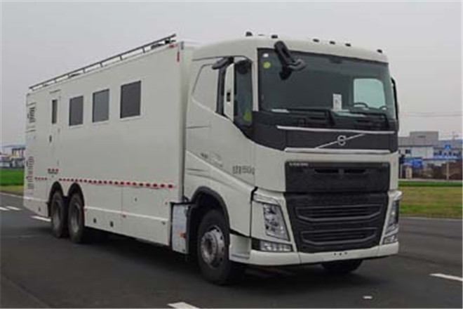 備注 主要專用裝置:衛(wèi)星天線,發(fā)電機,通信機柜等;側(cè)面和后部為客廂式裙邊結(jié)構(gòu),側(cè)裙邊離地高385mm,后裙邊離地高495mm;ABS型號:EBS7 ECU,生產(chǎn)企業(yè):KNORR.發(fā)動機時凈功率309kW,頂部封閉,不可開啟.
