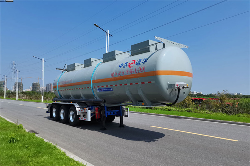 | 備注 | 罐體總?cè)萘?8.5立方米,罐體有效容積27.1立方米.罐體外形尺寸(mm):外罐長(zhǎng)9765,直徑前φ1960后φ2110.危險(xiǎn)貨物運(yùn)輸車輛的類型為:FL型,準(zhǔn)運(yùn)介質(zhì)的最大密度為1155千克/立方米.該車裝空氣懸架,選裝側(cè)面尾部操作箱、側(cè)面防護(hù)工具箱位置,選裝擋泥板樣式,選裝尾部標(biāo)志板位置,選裝滅火器安裝位置,選裝護(hù)肩及與之匹配的扶手,選裝集液槽數(shù)量、位置及與之匹配的扶手,選裝后部上橫梁材料,選裝軟管存放箱、側(cè)面結(jié)構(gòu),選裝頂部燈支架樣式,選裝前部帶爬梯、正后不帶爬梯及正后新爬梯樣式.ABS廠家/型號(hào):威伯科(上海)管理有限公司/4005000880,浙江萬安科技股份有限公司/VIE-TABS Ⅱ(4S2M),廣州瑞立科密汽車電子股份有限公司/CM2XL-4S/2M,廣州市西合汽車電子裝備有限公司/XH-GQ4S2M-E01.EBS廠家,型號(hào):克諾爾商用車系統(tǒng)企業(yè)管理(上海)有限公司,K11061XVXX或瀚德汽車產(chǎn)品(蘇州)有限公司,4S2M或威伯科(上海)管理有限公司, 4801020640或浙江萬安科技股份有限公司,VIE TEBS-I或廣州瑞立科密汽車電子股份有限公司,CM-TEBS.側(cè)防護(hù)材料為鋁合金,螺栓連接;后防護(hù)材料Q235,螺栓連接,后防護(hù)斷面尺寸65×150mm,離地高495mm.采用適用于牽引危險(xiǎn)品運(yùn)輸半掛車的牽引車. | ||