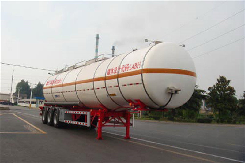 | 備注 | 罐體有效容積43.8立方米,罐體總?cè)萘?6立方米.罐體外形尺寸( mm):保溫外罐長:12610外徑前φ2360/后φ2460; 內(nèi)罐:長12430外徑前φ2160/后φ2260.危險貨物運輸車輛的類型為:FL型,準運介質(zhì)的最大密度為693千克/立方米.該車裝空氣懸架,選裝側(cè)面防護裝置、擋泥板.爬梯可在罐體前部或后部或前后都裝.選裝滅火器安裝位置及樣式.選裝集液槽數(shù)量及位置、罐頂走道、護欄樣式 選裝握手盒結(jié)構(gòu),選裝分段裝配式大梁和T型梁結(jié)構(gòu)、支腿支架樣式、側(cè)防護支架樣式,選裝軟管存放箱、側(cè)面結(jié)構(gòu)及穿線管.選裝后部上橫梁結(jié)構(gòu)、材料及牌照板位置,選裝蒙皮、深淺封頭及燈支架,選裝正前、正后爬梯及頂部燈支架新結(jié)構(gòu).選裝側(cè)面尾部操作箱、側(cè)面工具箱樣式、尾部標志板安裝位置.ABS廠家、型號:威伯科(上海)管理有限公司,4005000880或廣州瑞立科密汽車電子股份有限公司,CM2XL-4S/2K(4S/2M)或浙江萬安科技股份有限公司,VIE-TABSⅡ或廣州市西合汽車電子裝備有限公司,XH-GQ4S2M-E01或翰德汽車產(chǎn)品(蘇州)有限公司,364570001.EBS廠家、型號:克諾爾商用車系統(tǒng)企業(yè)管理(上海)有限公司,K11061XVXX或瀚德汽車產(chǎn)品(蘇州)有限公司,4S2M或威伯科(上海)管理有限公司,4801020640或浙江萬安科技股份有限公司,VIE TEBS-I或廣州瑞立科密汽車電子股份有限公司,CM-TEBS.側(cè)防材料為鋁合金,螺栓連接;后防材料為Q235或鋁合金,螺栓連接,斷面尺寸80mm×150mm,后防護材料為Q235,螺栓連接.后防護斷面尺寸65×150mm,離地高495mm.采用適用于牽引危險品運輸半掛車的牽引車. | ||