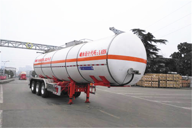 備注 罐體有效容積30.2立方米,罐體總?cè)萘?1.8立方米.罐體外形尺寸(mm):裝100mm保溫層厚度時(shí)外罐長(zhǎng)10275封頭直徑前φ2160后φ2310.內(nèi)罐長(zhǎng)10075封頭直徑前φ1960后φ2110.選裝50mm保溫層厚度時(shí)外罐長(zhǎng)10275封頭直徑前φ2060后φ2210.危險(xiǎn)貨物運(yùn)輸車(chē)輛的類型為:FL型,準(zhǔn)運(yùn)介質(zhì)的最大密度為1055.5千克/立方米.該車(chē)裝空氣懸架,選裝前部帶爬梯、后部不帶爬梯,選裝側(cè)面尾部操作箱、側(cè)面工具箱樣式,選裝尾部標(biāo)志板安裝位置,選裝擋泥板樣式,選裝側(cè)防護(hù)工具箱位置,選裝集液槽數(shù)量及位置、罐頂走道、護(hù)欄樣式,選裝滅火器安裝位置及樣式,選裝軟管存放箱、側(cè)面結(jié)構(gòu)及穿線管,選裝握手盒結(jié)構(gòu),選裝分段裝配式大梁和T型梁結(jié)構(gòu)、支腿支架樣式、側(cè)防護(hù)支架樣式,選裝后部上橫梁結(jié)構(gòu)及材料,選裝蒙皮、深淺封頭及燈支架,選裝正前、正后爬梯及頂部燈支架新結(jié)構(gòu).ABS型號(hào):4005000880,VIE-TABS Ⅱ(4S2M),CM2XL-4S/2M,XH-GQ4S2M-E01,EBS型號(hào):K11061XVXX,4S2M,4801020640,VIE TEBS-I,CM-TEBS;ABS生產(chǎn)企業(yè):威伯科(上海)管理有限公司,浙江萬(wàn)安科技股份有限公司,廣州瑞立科密汽車(chē)電子股份有限公司,廣州市西合汽車(chē)電子裝備有限公司,EBS生產(chǎn)企業(yè):克諾爾商用車(chē)系統(tǒng)企業(yè)管理(上海)有限公司,瀚德汽車(chē)產(chǎn)品(蘇州)有限公司,威伯科(上海)管理有限公司,浙江萬(wàn)安科技股份有限公司,廣州瑞立科密汽車(chē)電子股份有限公司.側(cè)防護(hù)材料為鋁合金,螺栓連接;后防護(hù)材料為鋁合金或Q235,螺栓連接,后防護(hù)斷面尺寸80×150mm,后防護(hù)材料為Q235,螺栓連接,后防護(hù)斷面尺寸65×150mm,離地高495mm.采用適用于牽引危險(xiǎn)品運(yùn)輸半掛車(chē)的牽引車(chē).