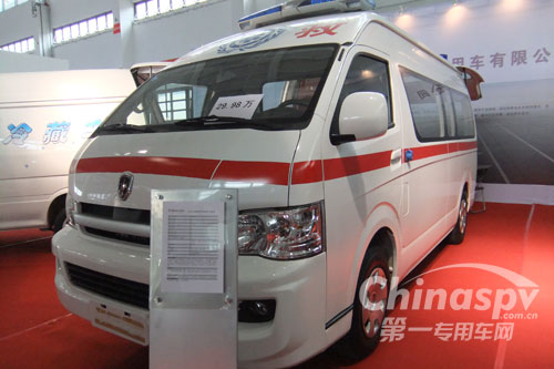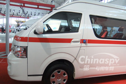 醫(yī)療艙頂部安裝輸液瓶懸吊裝置,自動上車擔架,擔架平臺及鏟式擔架,醫(yī)療專用地板,采用耐酸、堿、防火、防滑、防靜電底板,救護車專用外飾及救護標識,2升車載滅火器