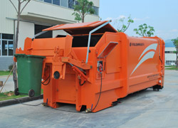 4.采用國(guó)內(nèi)首創(chuàng)、自主專利技術(shù)的垃圾桶提升機(jī)構(gòu)液壓緩沖和氣壓解除真空裝置。在垃圾桶接觸地面前,垃圾桶提升機(jī)構(gòu)自動(dòng)減速以及垃圾桶自動(dòng)與提升桶機(jī)構(gòu)解除真空吸附,從而避免垃圾桶與地面的撞擊,杜絕作業(yè)過(guò)程中的噪音對(duì)周邊環(huán)境的不良影響。